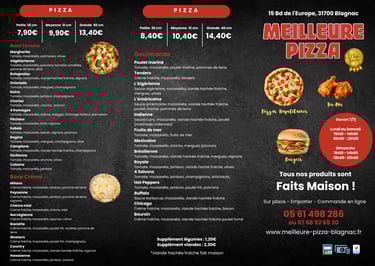 Situés stratégiquement à Blagnac, nous sommes votre destination idéale pour une soirée pizza parfaite. Que vous soyez en quête d'une croûte croustillante ou d'une pâte moelleuse, nos chefs talentueux sont là pour satisfaire toutes vos préférences. Découvrez notre menu diversifié, des classiques intemporels aux créations uniques, tous préparés avec amour et expertise.